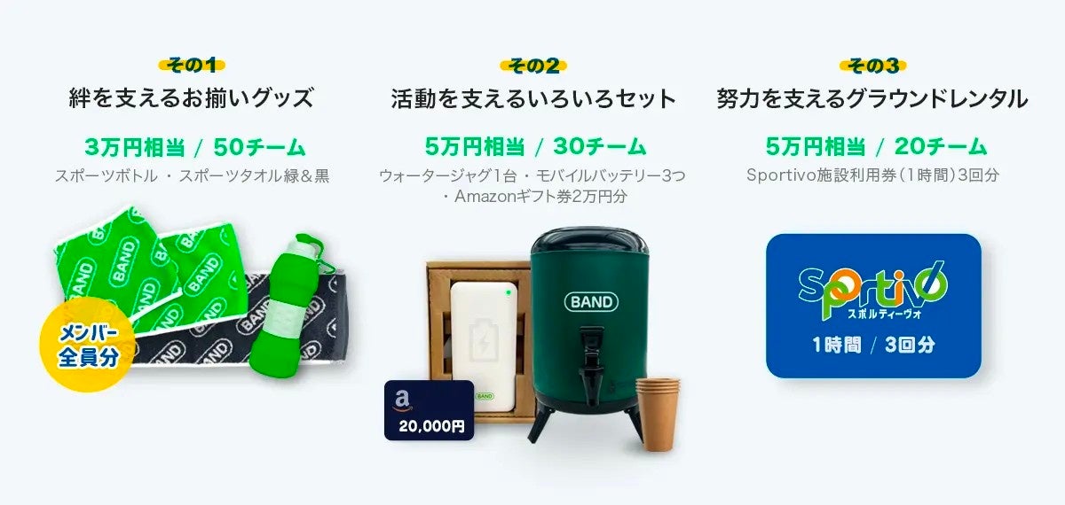 - BANDでは全国のスポーツチームが、大会や試合はもちろん普段の練習でさらなる活躍していただきたく、チームを応援するスポンサーキャンペーンを開催中です。