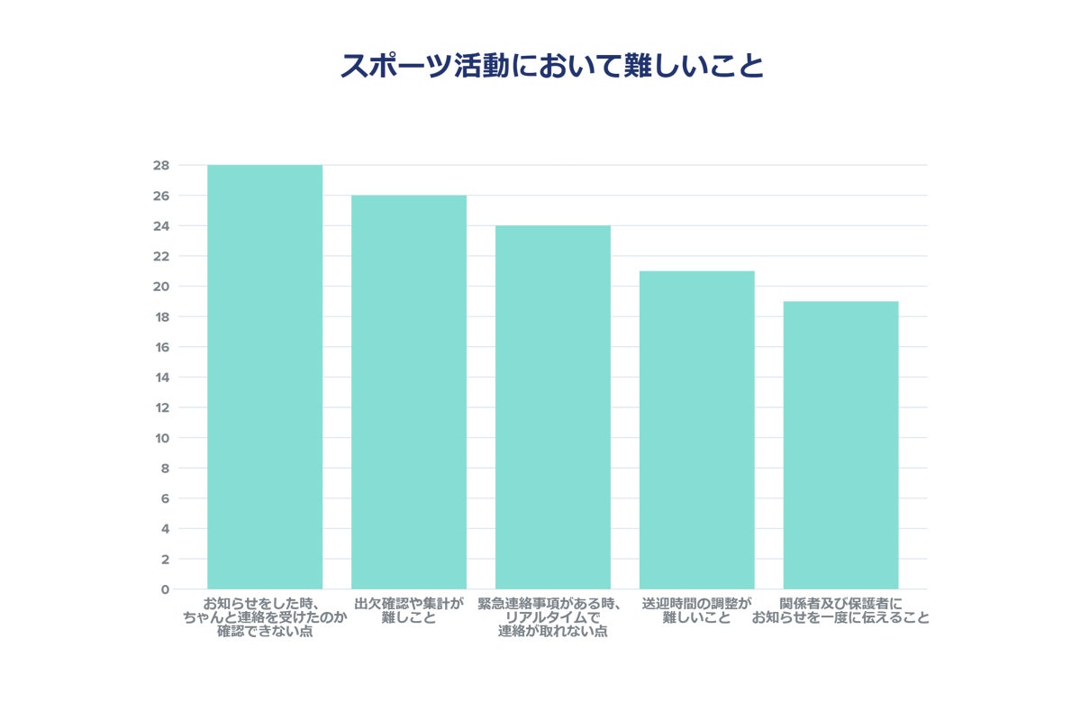 今回の調査から、子どものスポーツチーム活動に関わる全国の保護者や指導者は大会や試合、練習においての参加可否という出欠確認や詳細のお知らせなどを、オンライン連絡ツールを利用してリアルタイムに情報を共有しつつ、連絡を取ることがグループの運営や管理において効率的になるということがわかりました。