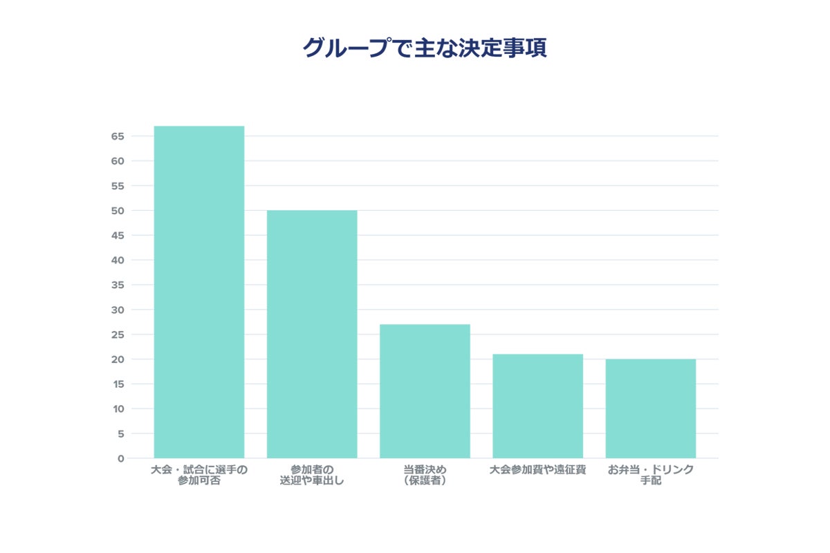 - チームで主な意思決定事項は試合や練習での「参加可否」67%