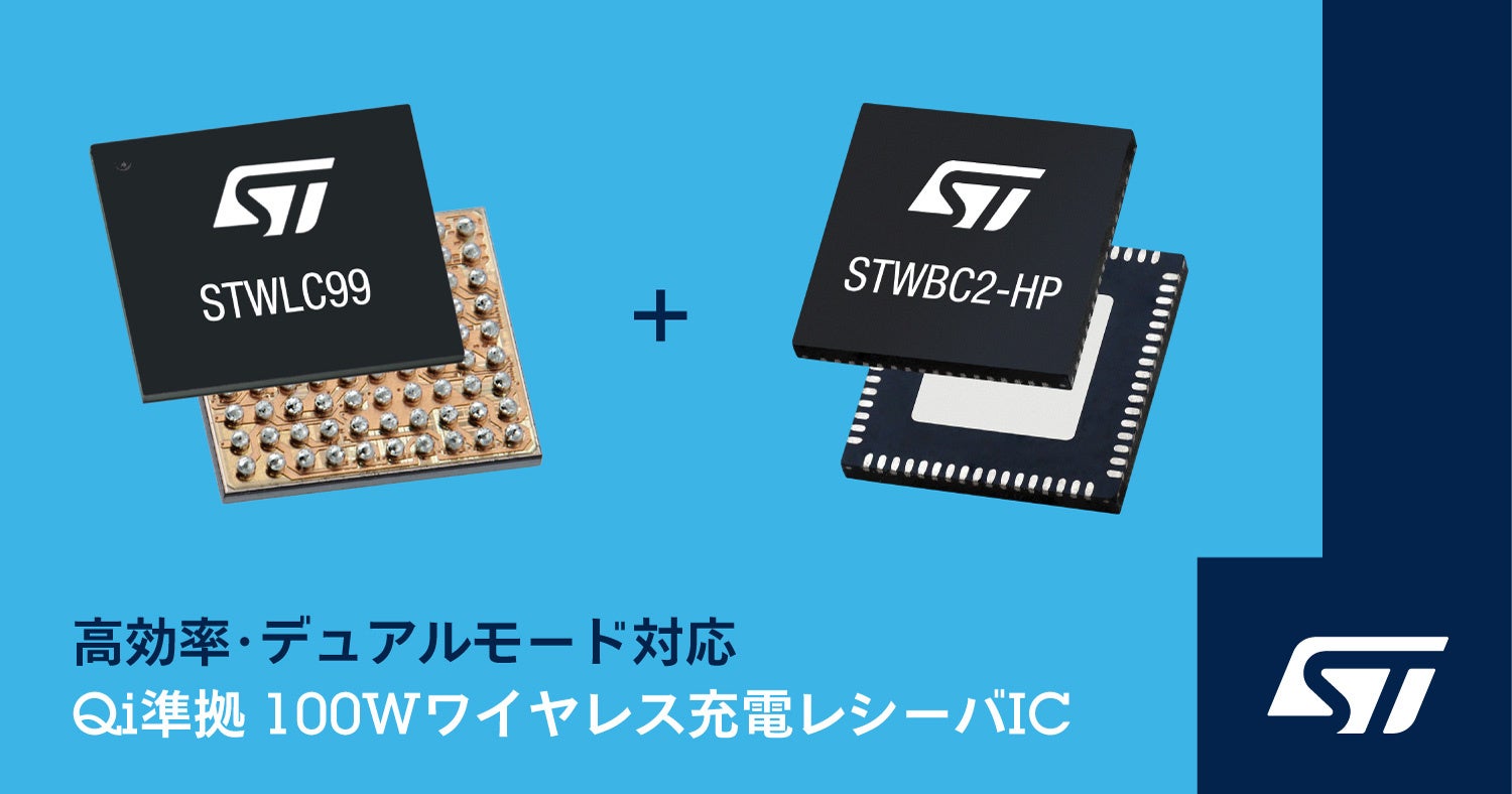 多種多様な電子機器に半導体を提供する世界的半導体メーカーのSTマイクロエレクトロニクス(NYSE:STM、以下ST)は、業界最高クラスの100W出力を備えたワイヤレス充電レシーバIC「STWLC99」を発表しました。同製品は、市場でも最速クラスのワイヤレス充電を実現し、ハイエンド・スマートフォンの大容量バッテリを30分未満で充電できます。