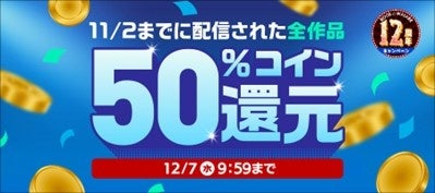 2022年11月2日(水)までに配信された全作品が対象!コイン50%還元キャンペーン
