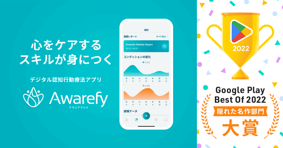 今回Awarefyは、2022年Google Play ベスト オブ「隠れた名作部門」にて大賞を受賞いたしました。
