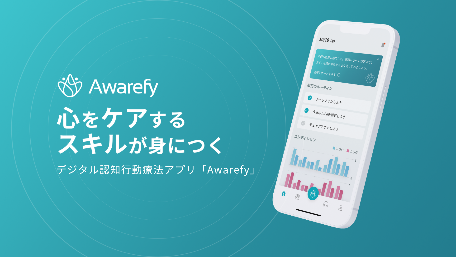 株式会社 Awarefy は、「心の健康を支えるデジタル・メンタル・プラットフォームを実現する」をミッションに、デジタル認知行動療法アプリ「Awarefy」 の企画・開発・運営を行っています。今後、Awarefy を通じてユーザーに価値を提供するべく、アプリの機能拡充にとどまらず、さまざまな事業展開を行ってまいります。