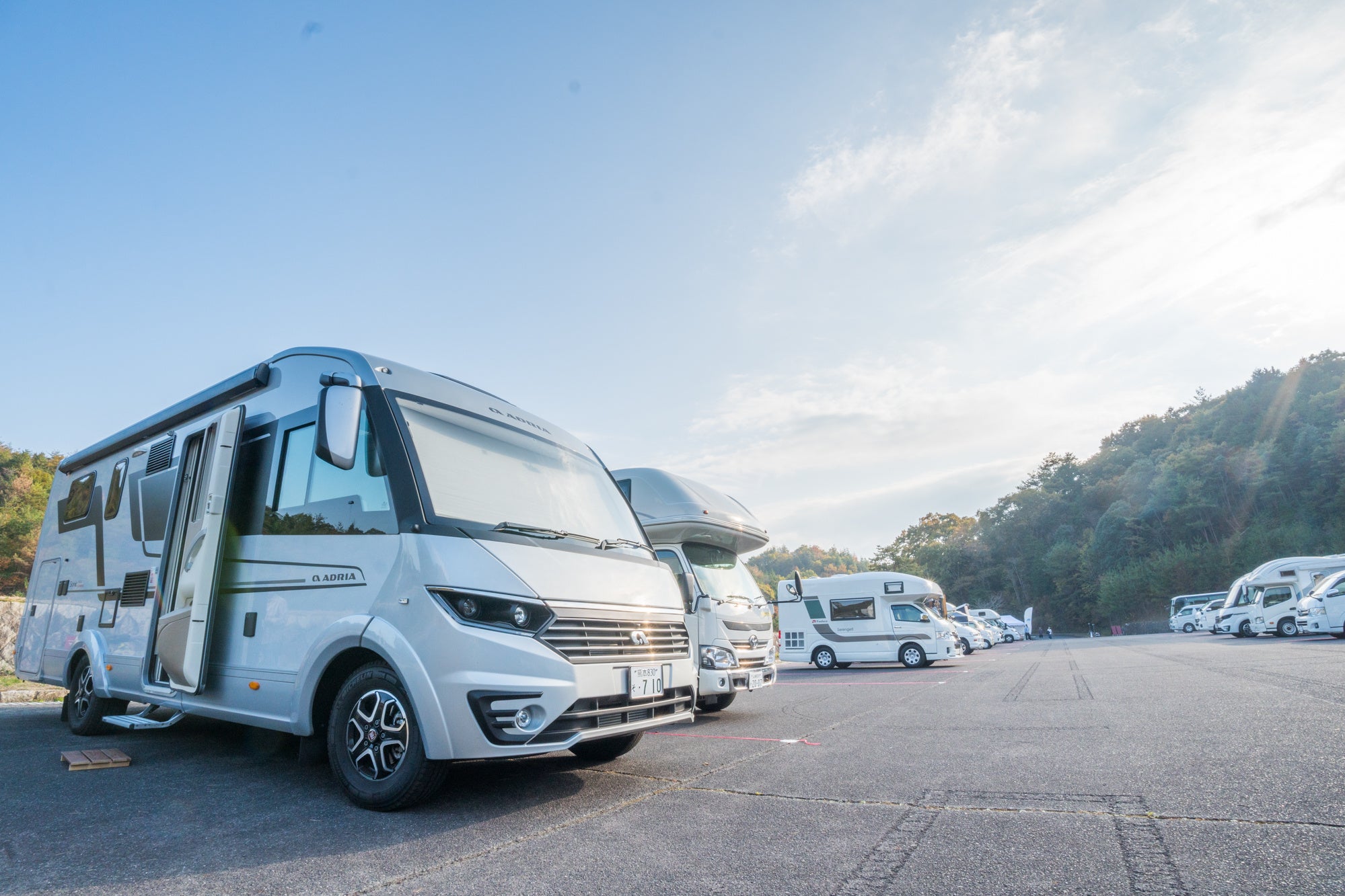 【11月毎週末、広島国際空港に隣接する中央森林公園の車中泊 会場に各地からキャンピングカーが集まりました】