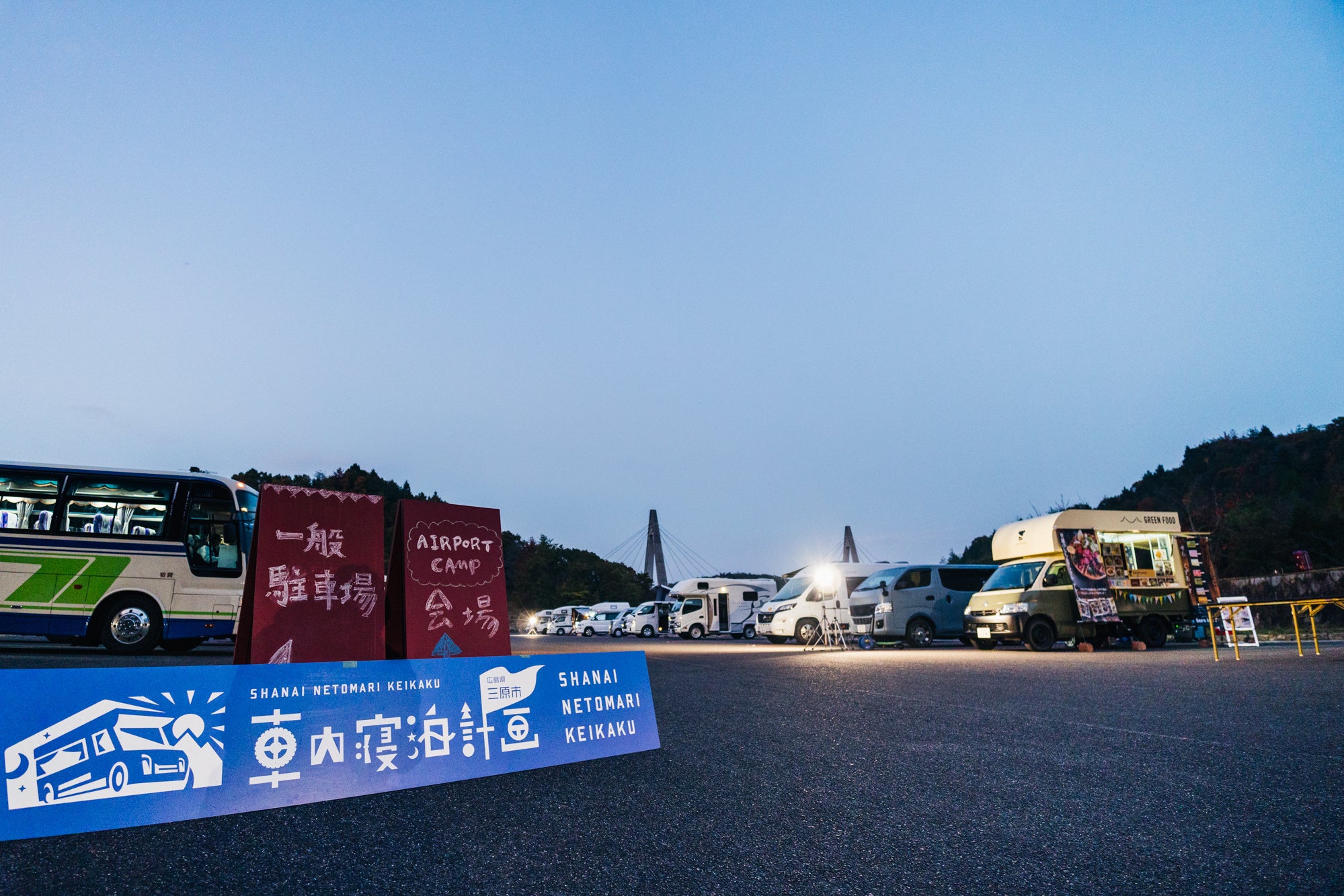 今回の「秋のAirPortCamp」は、今年夏に開催した「YASSA CAMP」に続く第二弾となるもので、三原市で展開する車中泊/バンライフで地域活性を図るプロジェクト「三原車内寝泊計画」の一環です。