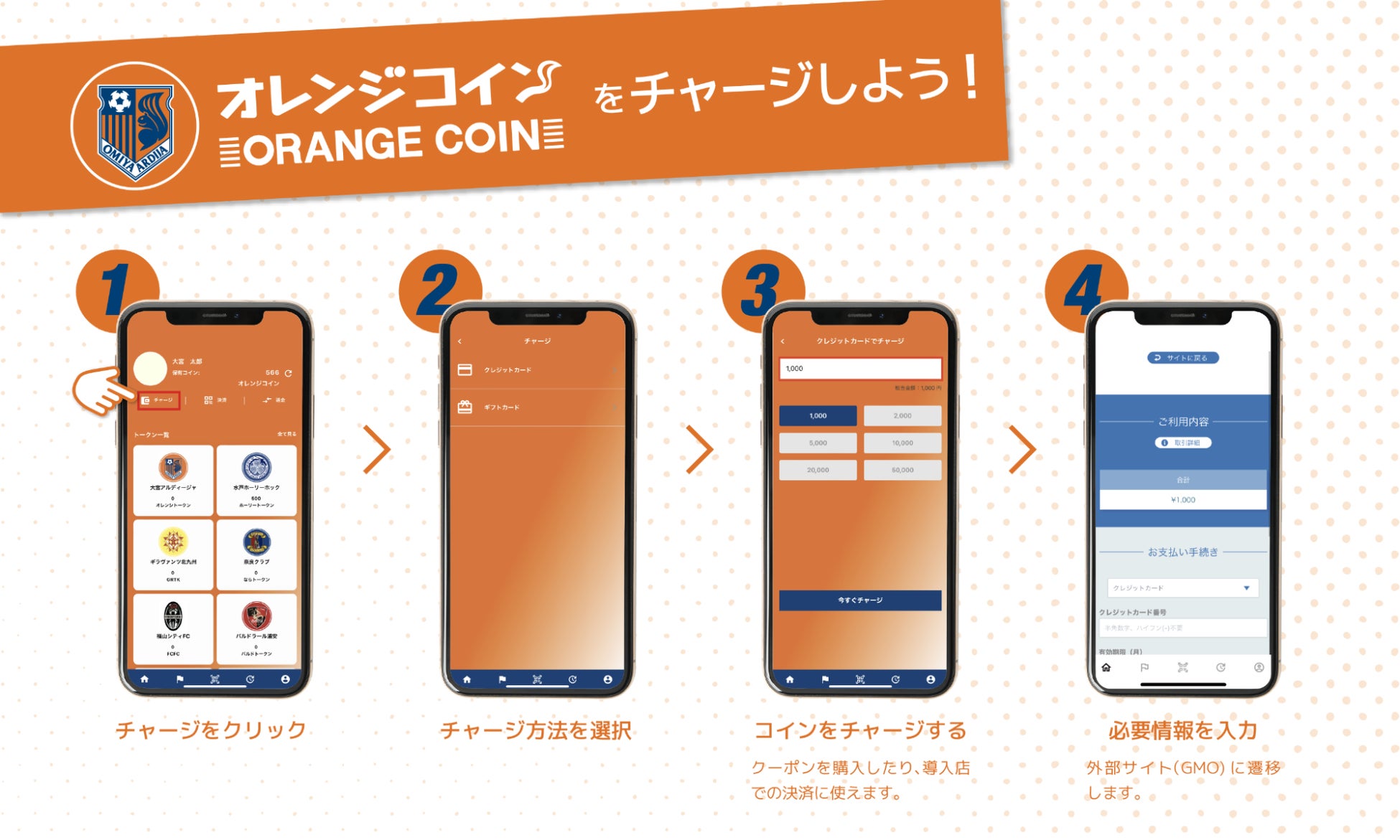 以下のサイトよりご登録後、応援チームで「大宮アルディージャ」を選んだ後、「オレンジコイン」をチャージして、決済にご利用ください。