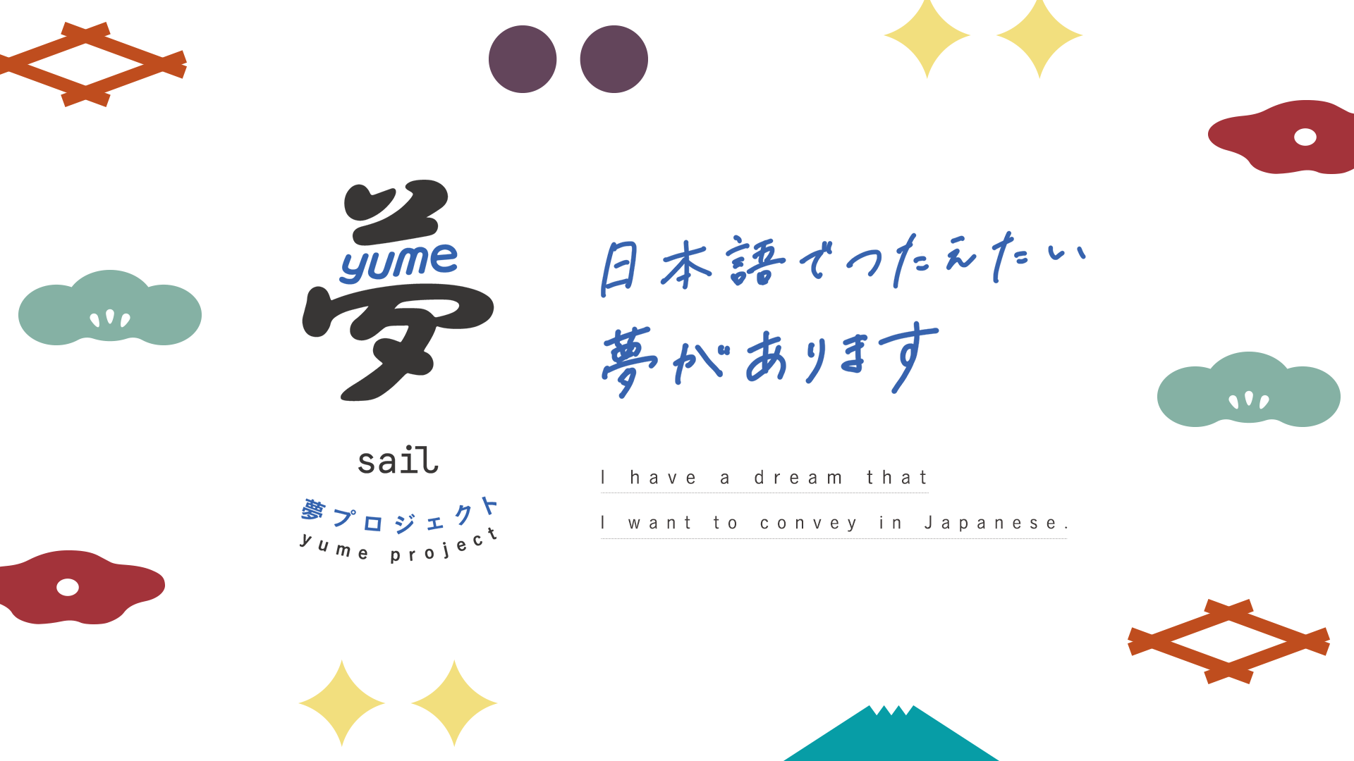 Le projet Sail Yume est le plus grand concours en ligne d’expression orale en japonais qui existe dans le monde et il est destiné à aider ceux qui rêvent des trois choses ci-dessus. Grâce à ce projet, les participants dont ce n’est pas la langue maternelle pourront apprendre le japonais, découvrir la culture japonaise et améliorer leurs compétences linguistiques.
