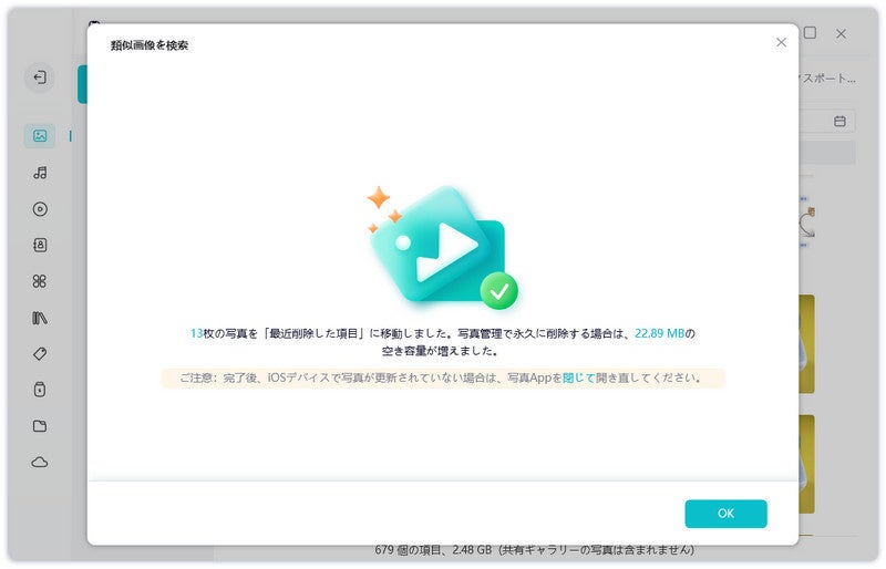 手順3:しばらくすると、iOSデバイスの類似画像が正常に削除されました。