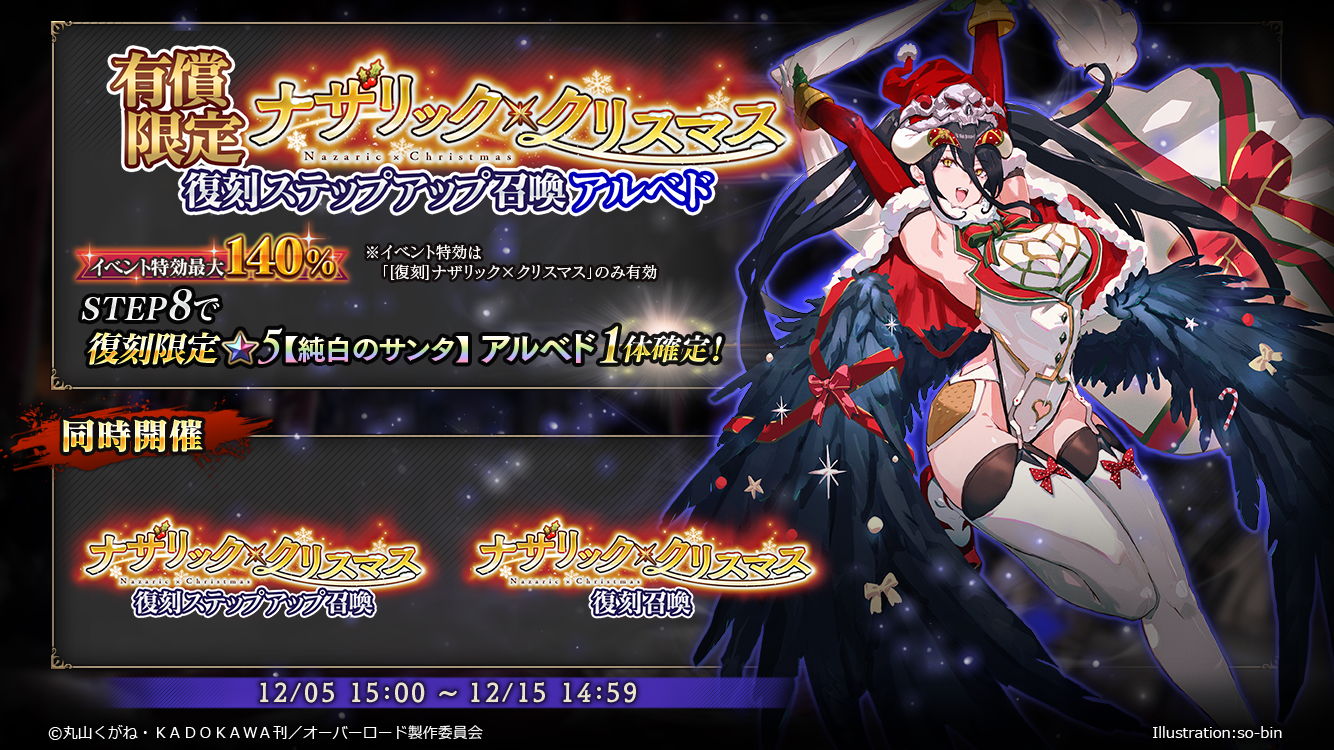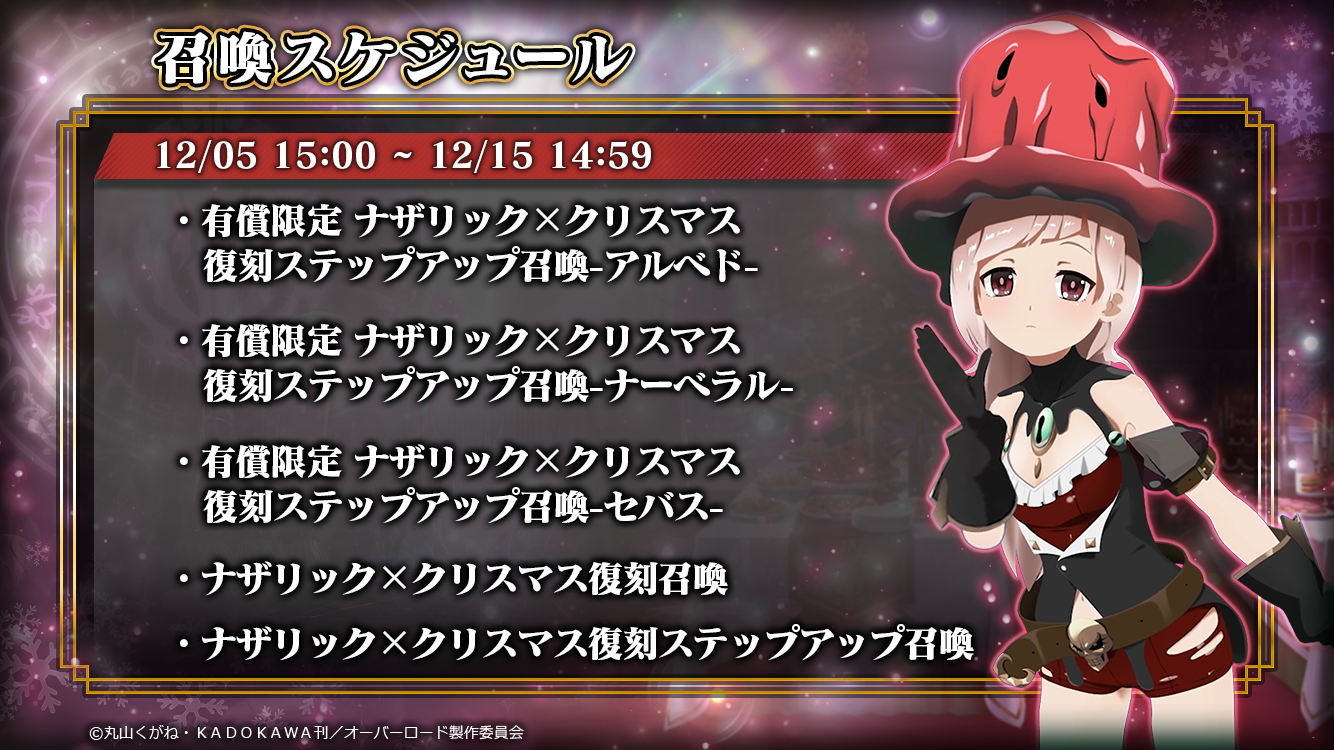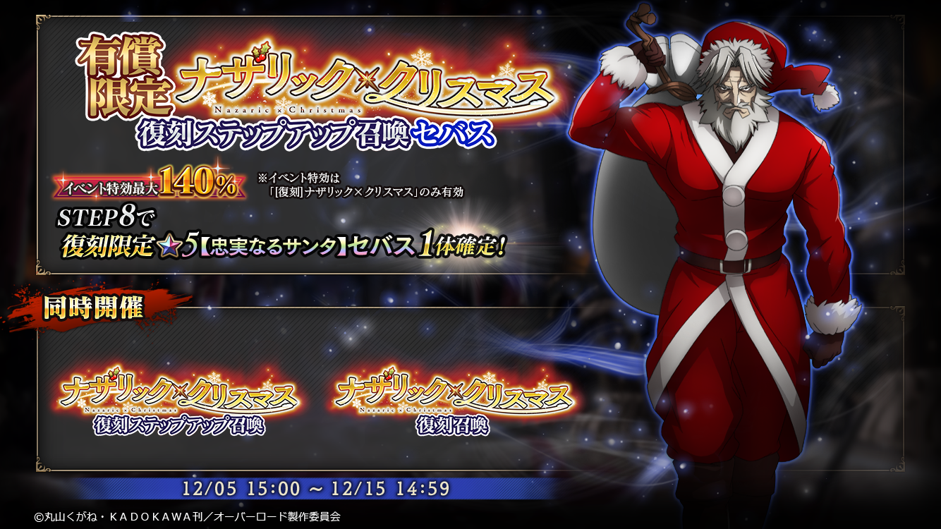 ■イベント召喚『有償限定ナザリック×クリスマス復刻ステップアップ召喚(キャラ別)』開催!