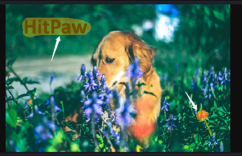 ・テストするには、2つの透かしを選びました。取り扱いが容易なHitPawのロゴ & 草に囲まれた小さな花