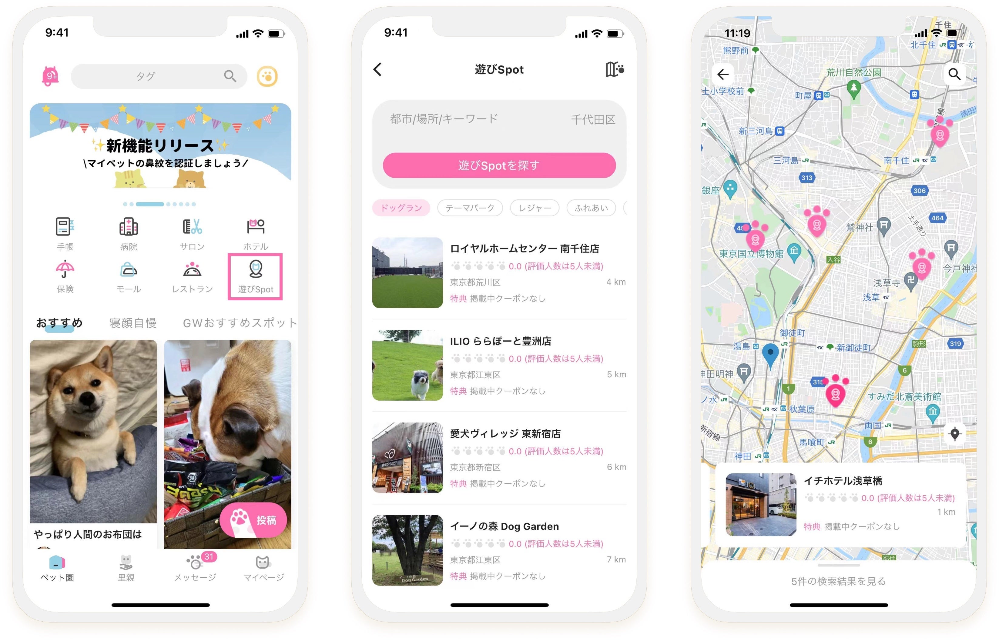 ペット総合アプリ『Pet』は、飼い主によるペットの写真や動画の投稿、コメント投稿を通じた飼い主同士の交流だけでなく、ペットの育て方やおすすめの商品·サービスなどの情報も集まるSNSアプリです。『Pet』はペットサロンやペットホテル、動物病院、ペット可のレストランなどペット用施設やペット保険サービス、そして里親募集の情報を掲載しているほか、ペット用の商品を購入できる『Pet』モールも運営しており、ペット好きな人々にとって便利に、そして楽しく暮らせる情報をワンストップで入手できるプラットフォームを提供しています。