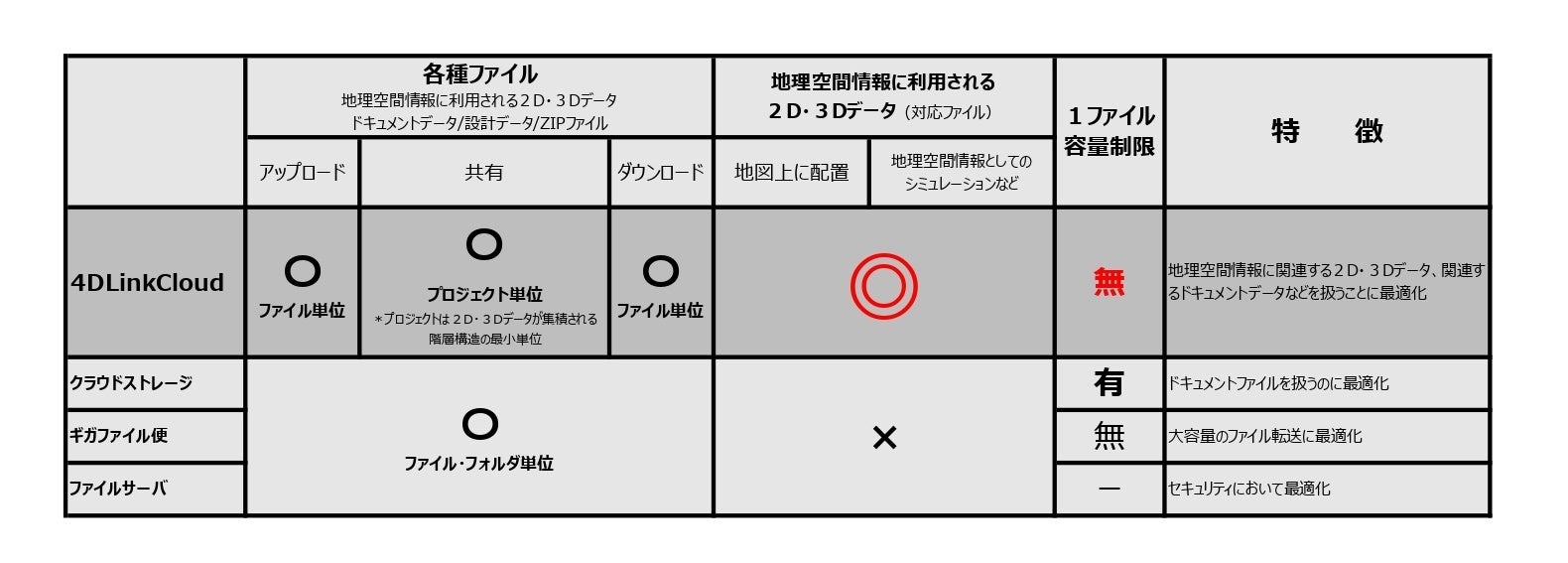 地理空間情報においては不便な要素を持つクラウドストレージ・ギガファイル便・ファイルサーバの欠点をカバーします。