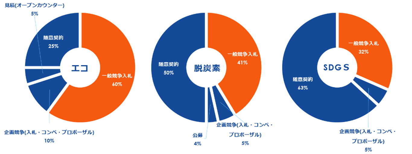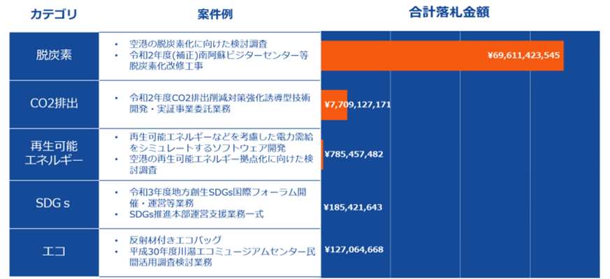 公示案件数1位は「エコ」。落札金額では、調査や建設工事をともなう「脱炭素」が1位に。