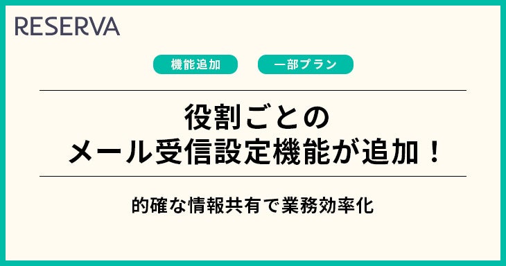 - 「役割ごとのメール受信設定」機能でさらに便利になった予約管理システム「RESERVA」