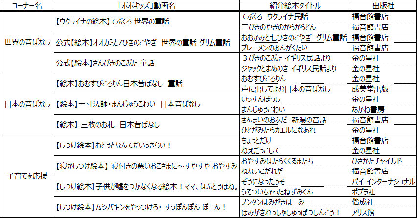◆当コーナー初回紹介リスト(紹介動画と絵本は定期的に入れ替えを実施)