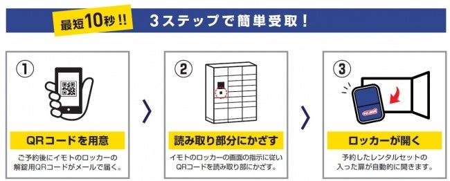 さらに「イモトのロッカー」設置空港であれば、スマホのQRコードをかざすだけで簡単にレンタルセットを受取できちゃいます!対人での使用方法のご案内が不要な方には、ロッカー受取がオススメです!