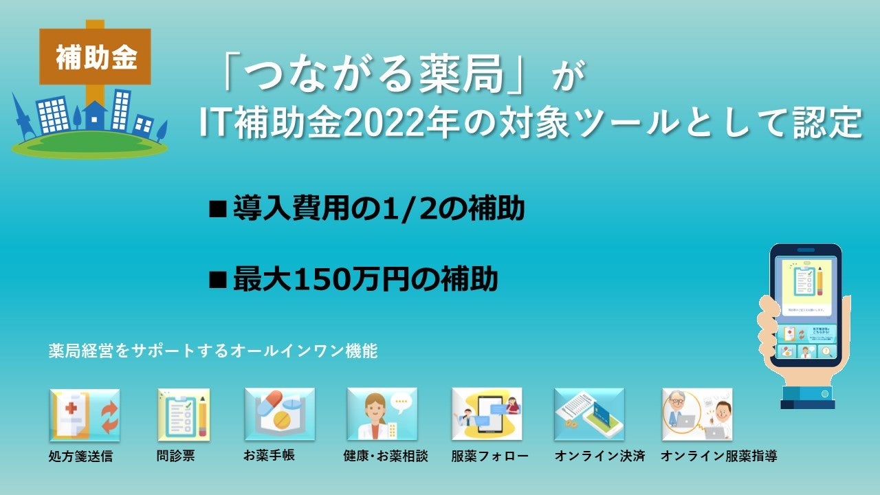 これにより、IT導入補助金の対象となる薬局様においては、導入費用の2分の1(最大150万円)の補助を受けることができます。