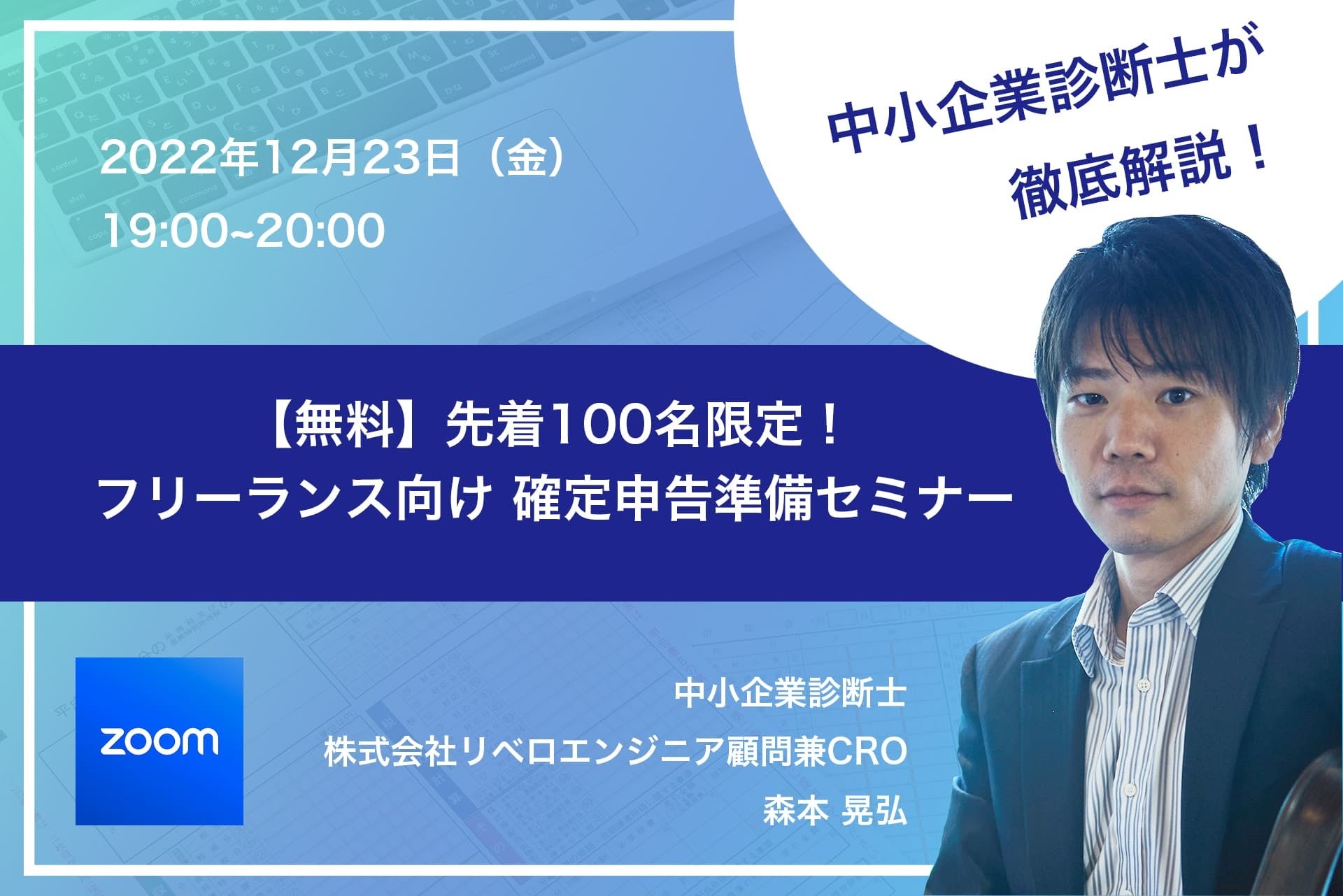 モデレーターは中⼩企業診断⼠でもあり、株式会社リベロエンジニア顧問兼CRO(最⾼リスク責任者)の森本 晃弘が務めます。