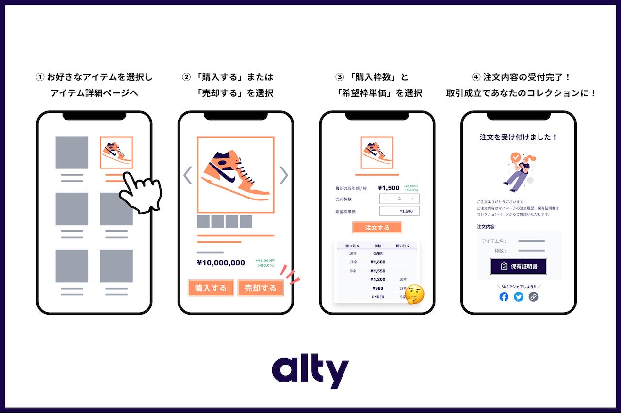 (*1)「IPO販売」とは、アイテムがaltyプラットフォームに出品された後、altyがユーザーに対して保有権を販売する取引をいいます。