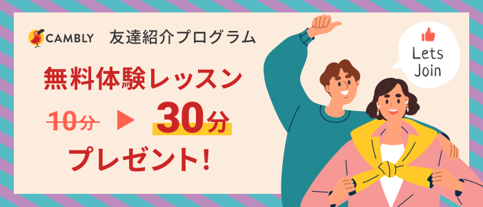 Camblyのオンライン英会話に興味をお持ちの方は、ぜひこの機会にお友達と一緒にお得にご利用ください!
