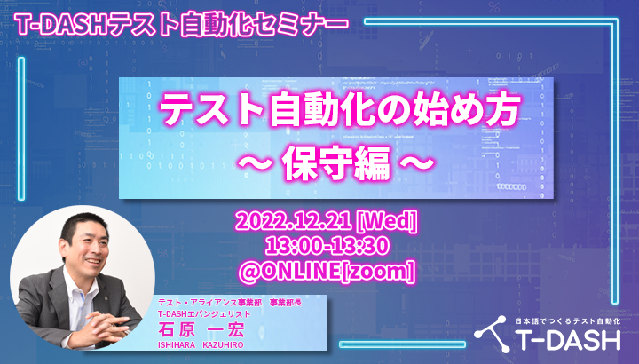 テスト自動化の導入に対する悩みなどのお困りごとにお答えするのがバルテスの主催するセミナーシリーズ「T-DASHテスト自動化セミナー」です。