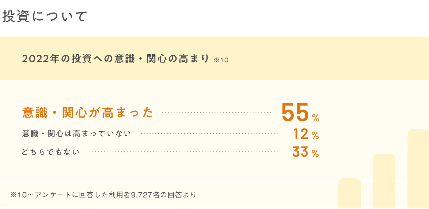 ・2022年を通して投資への意識・興味関心が高まったのは、全体の55%。