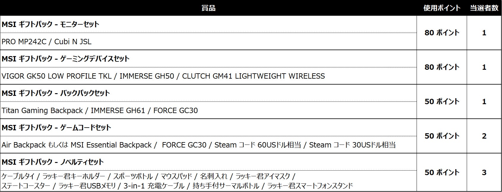 MSI リワードポイントを使うことで、抽選に参加することができます。