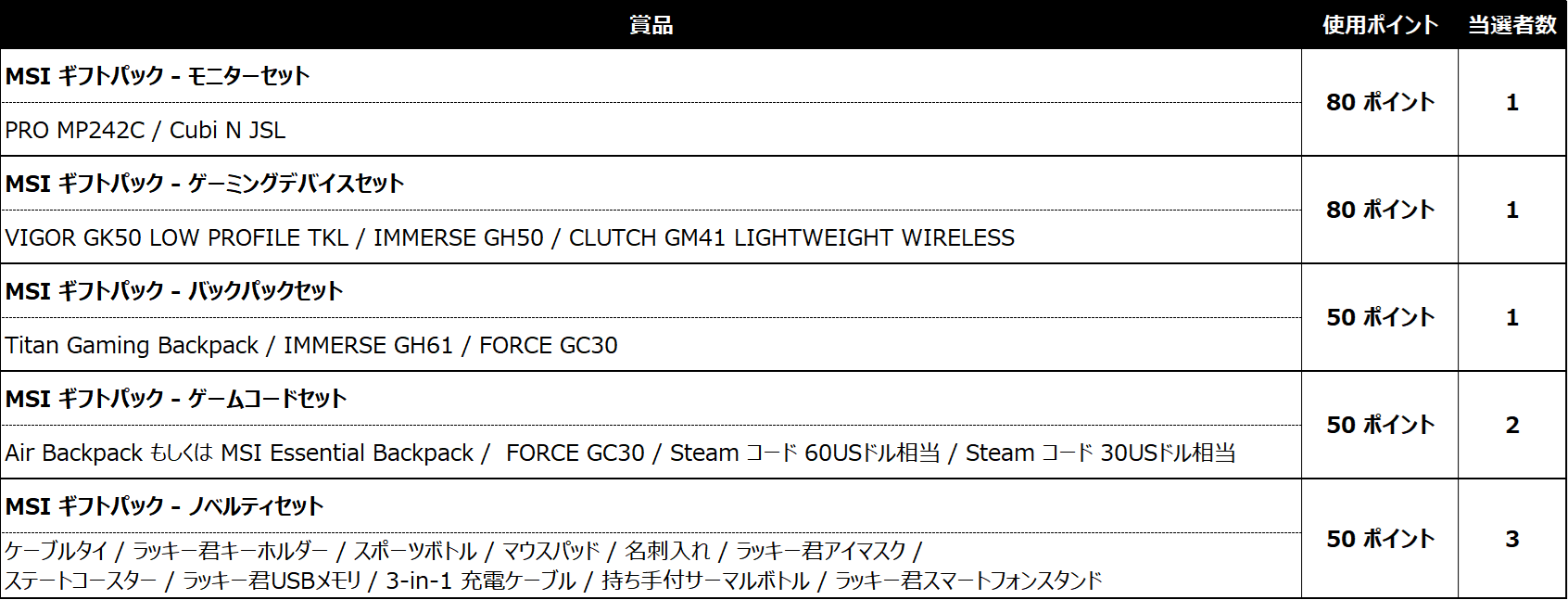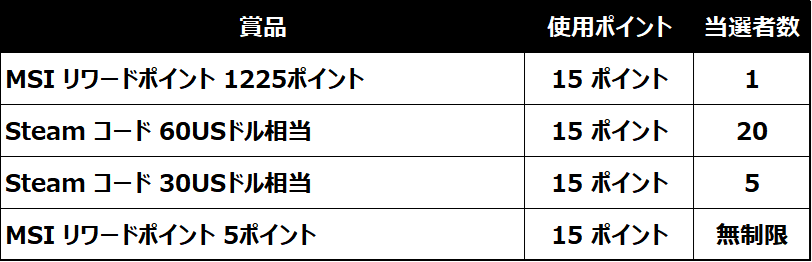 MSI リワードポイントを使うことで、抽選に参加することができます。