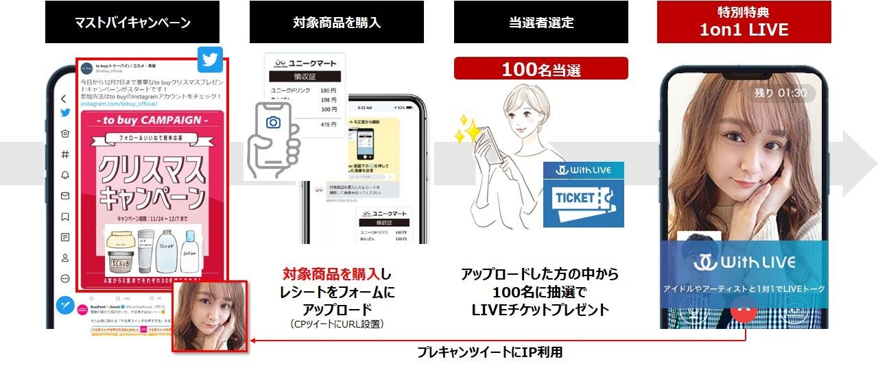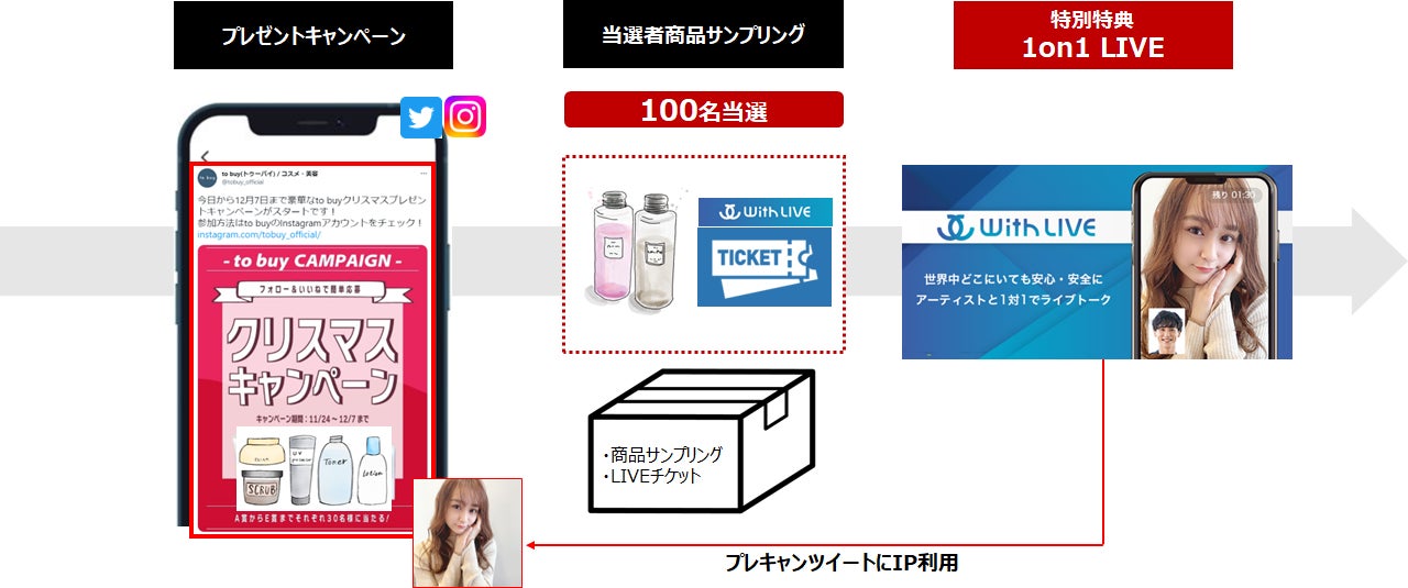 対象商品を購入した方の中から抽選で100名に1on1LIVEチケットをプレゼント。