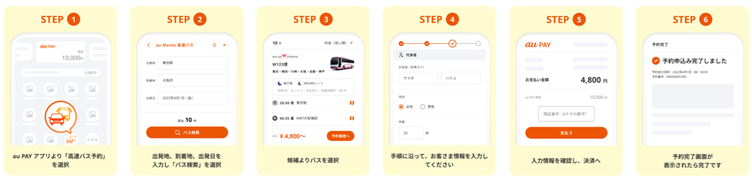 高速バスの検索・予約・決済・予約照会・キャンセル登録などの一連のお手続きをau PAY アプリ上で完結することが可能です。auに限らずスマートフォン・タブレットをお持ちのすべての方にご利用いただけます。決済方法は、au PAY(ネット支払い)となります。