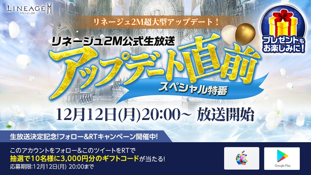 ■「リネージュ2M公式生放送 アップデート直前スペシャル特番!決定記念 フォロー&RTキャンペーン」開催