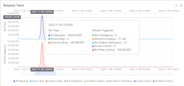 CDNetworksは、2022年11月8日、弊社Webサイトを標的とした220万リクエスト/秒(RPS)の大規模DDoS攻撃*と、弊社セキュリティプラットフォームによる緩和を確認いたしました。