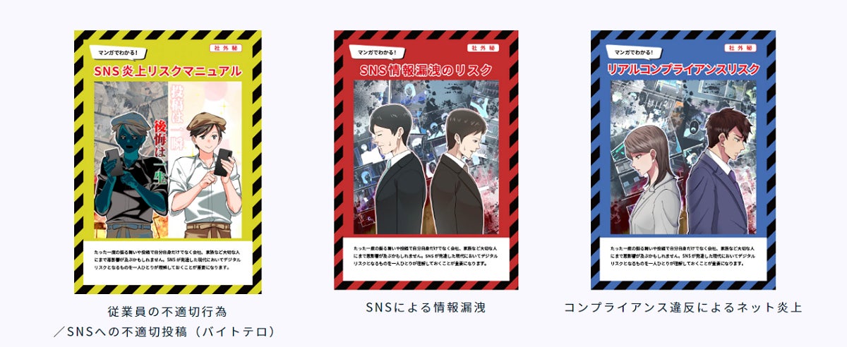 両社では既に複数企業へのSNSリスク対策を目的としたSNSリスクのマンガ教育教材を提供してきた実績から、ご要望の多い3つのリスク対策の啓発を目的としたSNSリスクのマンガ教育教材『コミプラ』を、共同で提供していく運びとなりました。