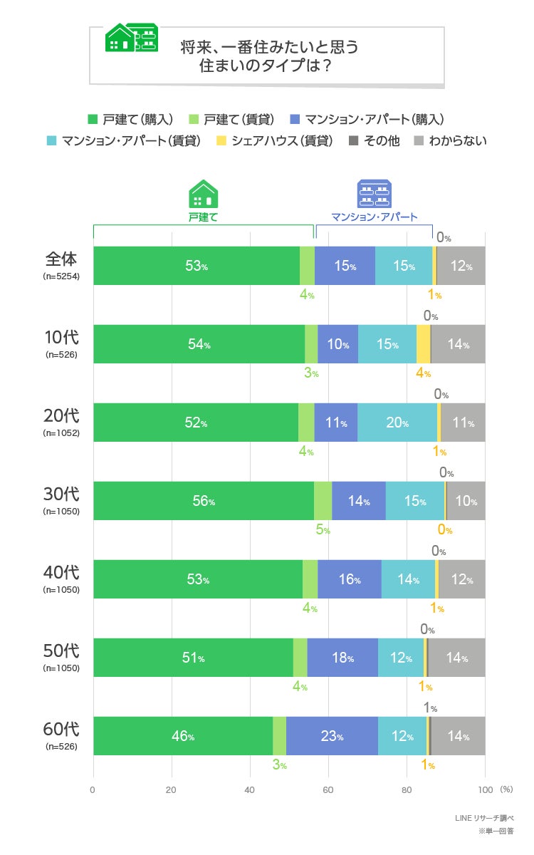 このたびLINEリサーチでは、日本全国の男女を対象に、理想の住まいのタイプや、住みたいと思う理由について調査しましたので、その結果をお知らせいたします。