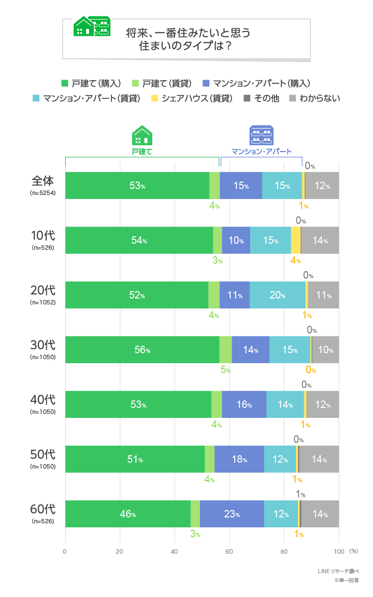 このたびLINEリサーチでは、日本全国の男女を対象に、理想の住まいのタイプや、住みたいと思う理由について調査しましたので、その結果をお知らせいたします。