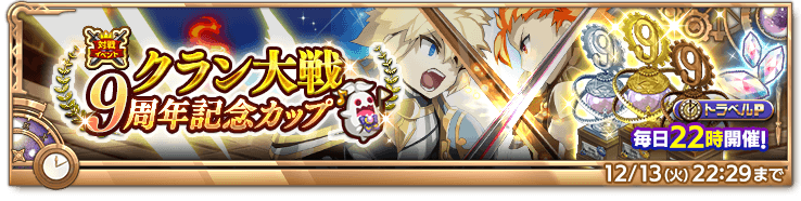 期間中、クラン大戦「9周年記念カップ」を開催します。