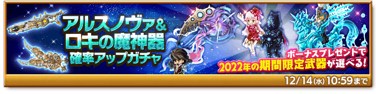 期間中、「アルスノヴァ&ロキの魔神器確率アップガチャ」を販売します。