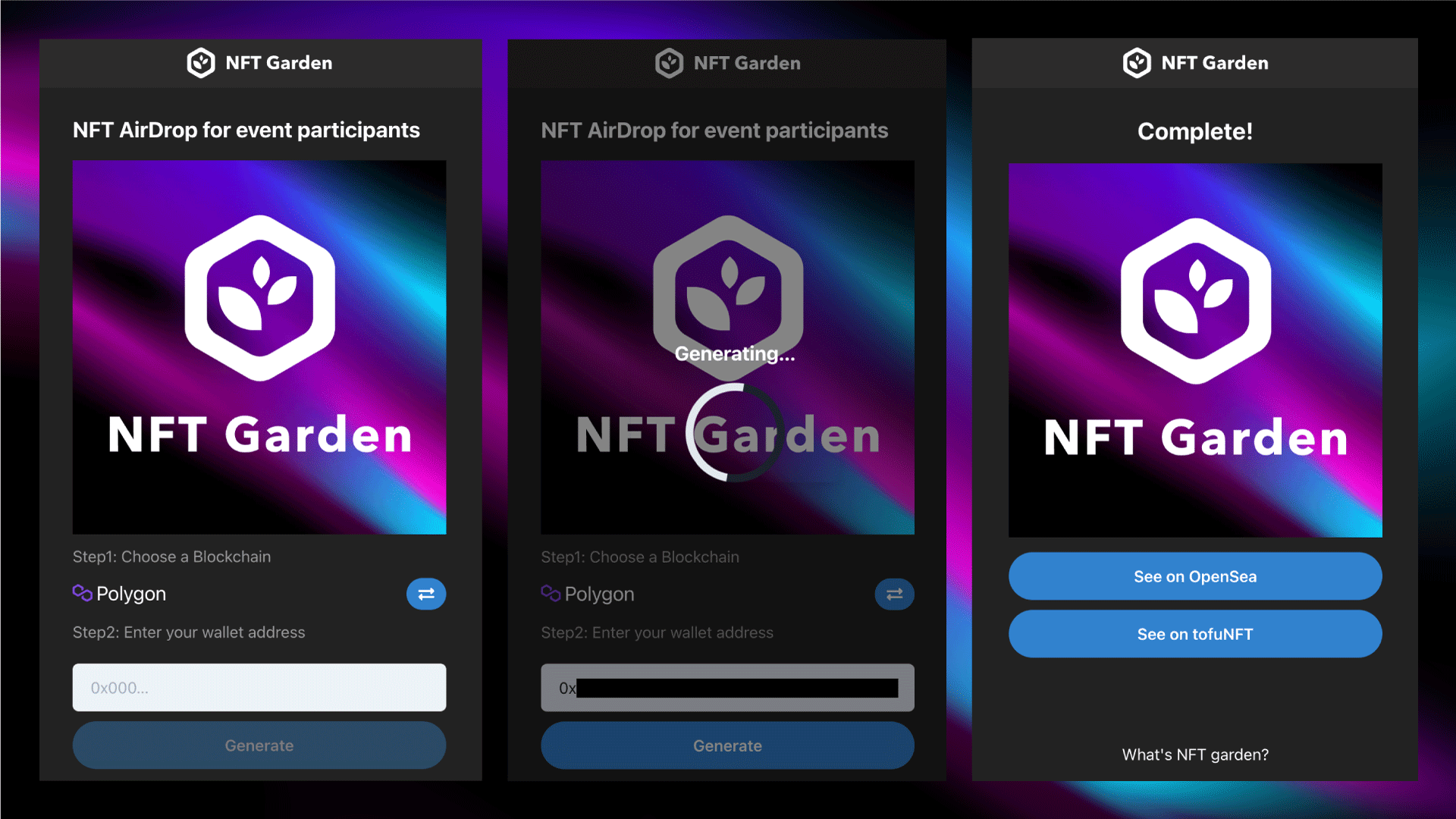 - NFT GardenのAPIを使用してイベント限定のNFTを配布