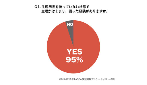オフィスで仕事をしている時に突然生理が来てしまった。生理用品を持ち合わせておらず、打ち合わせが続いていて外に買いに行く時間もない!という経験をした女性は多いのではないでしょうか? 「わたしの暮らし研究所株式会社」が調査した都内オフィスに勤める女性220名へのアンケート*によると、生理用品を持ち合わせていない時に急に生理が始まり困った経験がある女性は95%にのぼります。