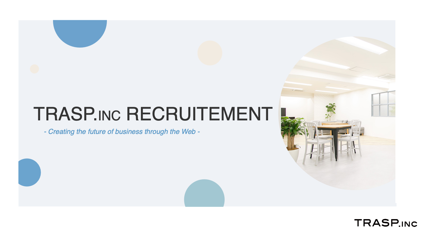 会社紹介資料:https://speakerdeck.com/trasp/traspzhu-shi-hui-she-cai-yong-pitutizi-liao