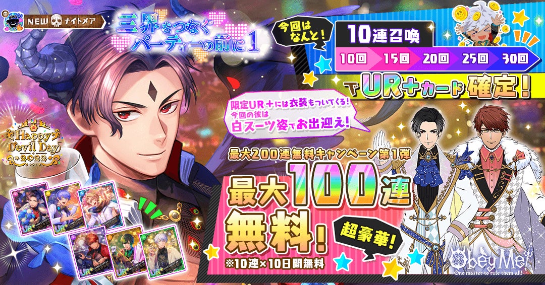 BIGイベント「Happy Devil Day 2022」開催!!メインイベントの「ナイトメア 三界をつなぐパーティーの前にでは第1弾第2弾を合せるとナイトメア(ガチャ)なんと最大200連無料に!他にも限定イベント多数実施