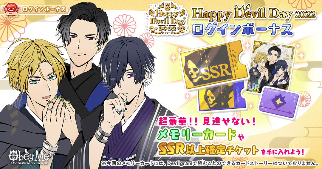 Happy Devil Day 2022 の開催期間中、これらの他にも多数のイベントやセールを予定しています。今年のアニバーサリーも『Obey Me!』は盛り上がること間違いなし!今すぐ魔界に全員集合!