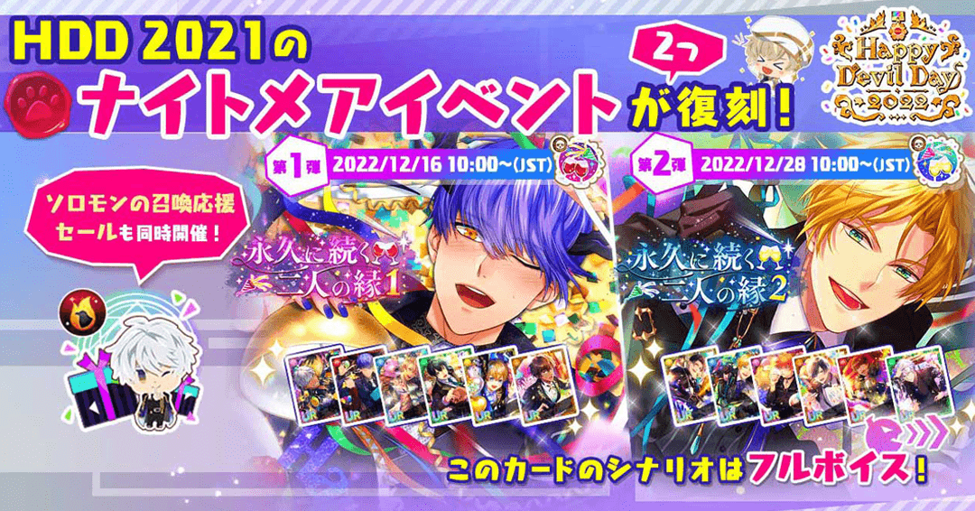■超BIGイベント「Happy Devil Day 2022」開催!!メインイベントの「ナイトメア 三界をつなぐパーティーの前に」では第1弾、第2弾を合せると、ナイトメア(ガチャ)がなんと最大200連無料に!他にも限定イベント多数実施