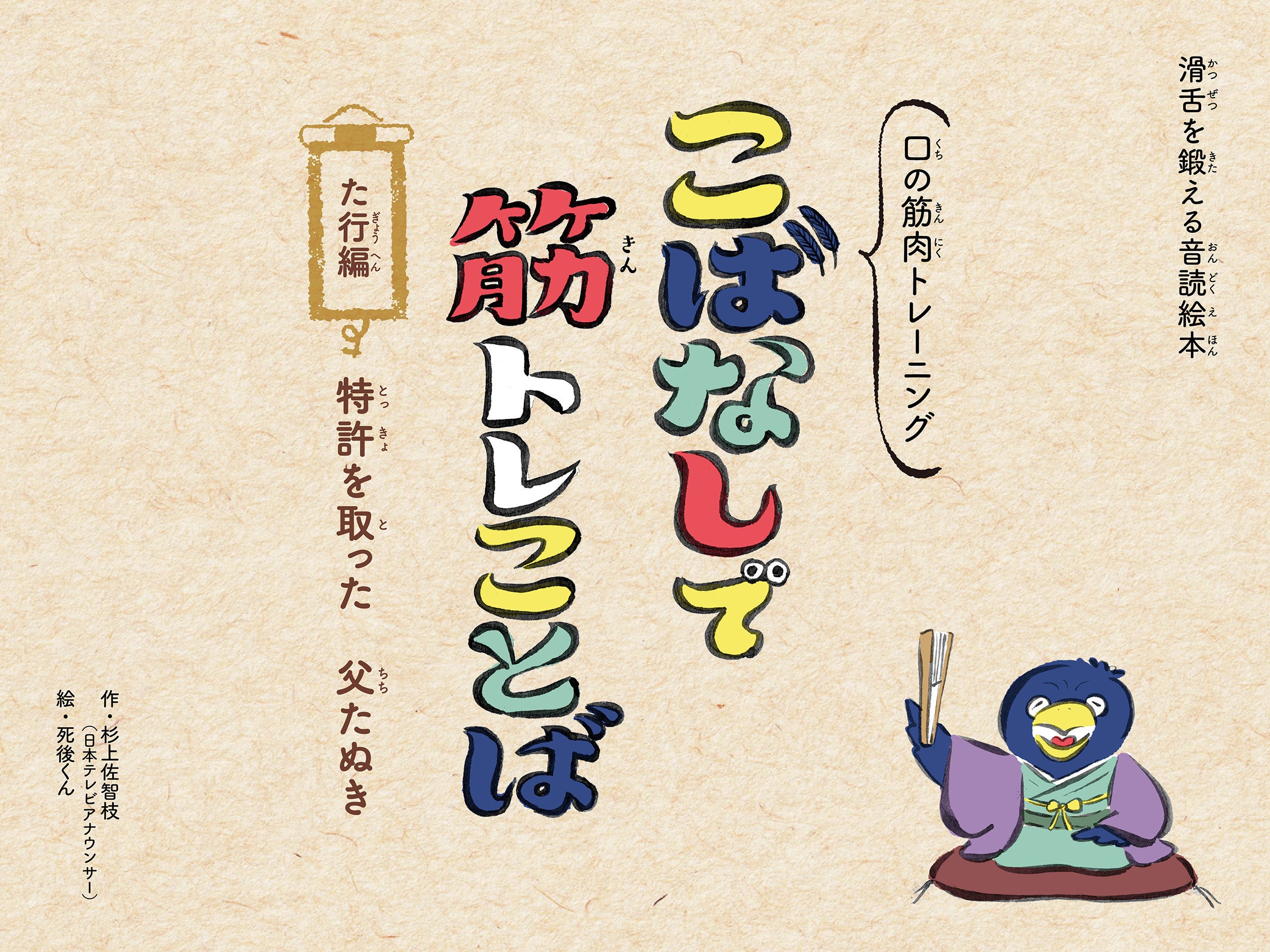【筋トレことばの絵本】シリーズ3作目は、こばなし形式!た行がとてつもなくてんこ盛り『特許を取った父たぬき』