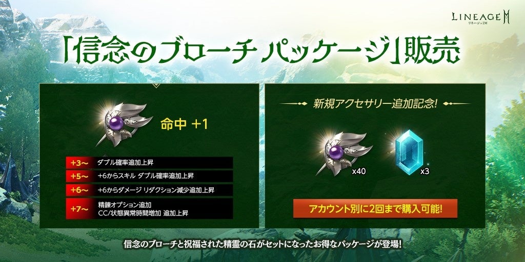 その「信念のブローチ」が入った「信念のブローチ箱(刻印)」40個や「祝福された精霊の石(刻印)」3個がセットになった「信念のブローチ パッケージ」が登場しました。