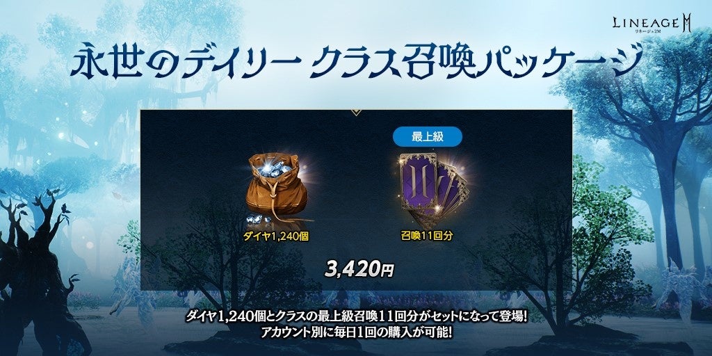 1日1回購入できる「永世のデイリー クラス召喚パッケージ」が登場しました。