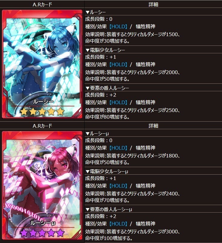 A.Rカード「ルーシー」はクリティカルダメージや命中などダメージを伸ばす能力に優れています。