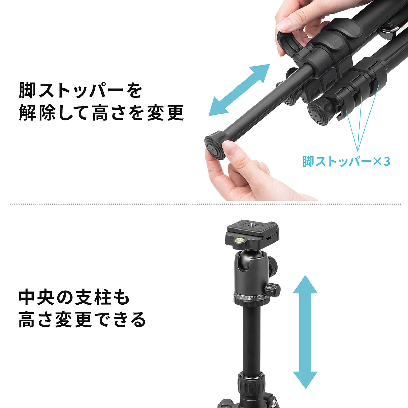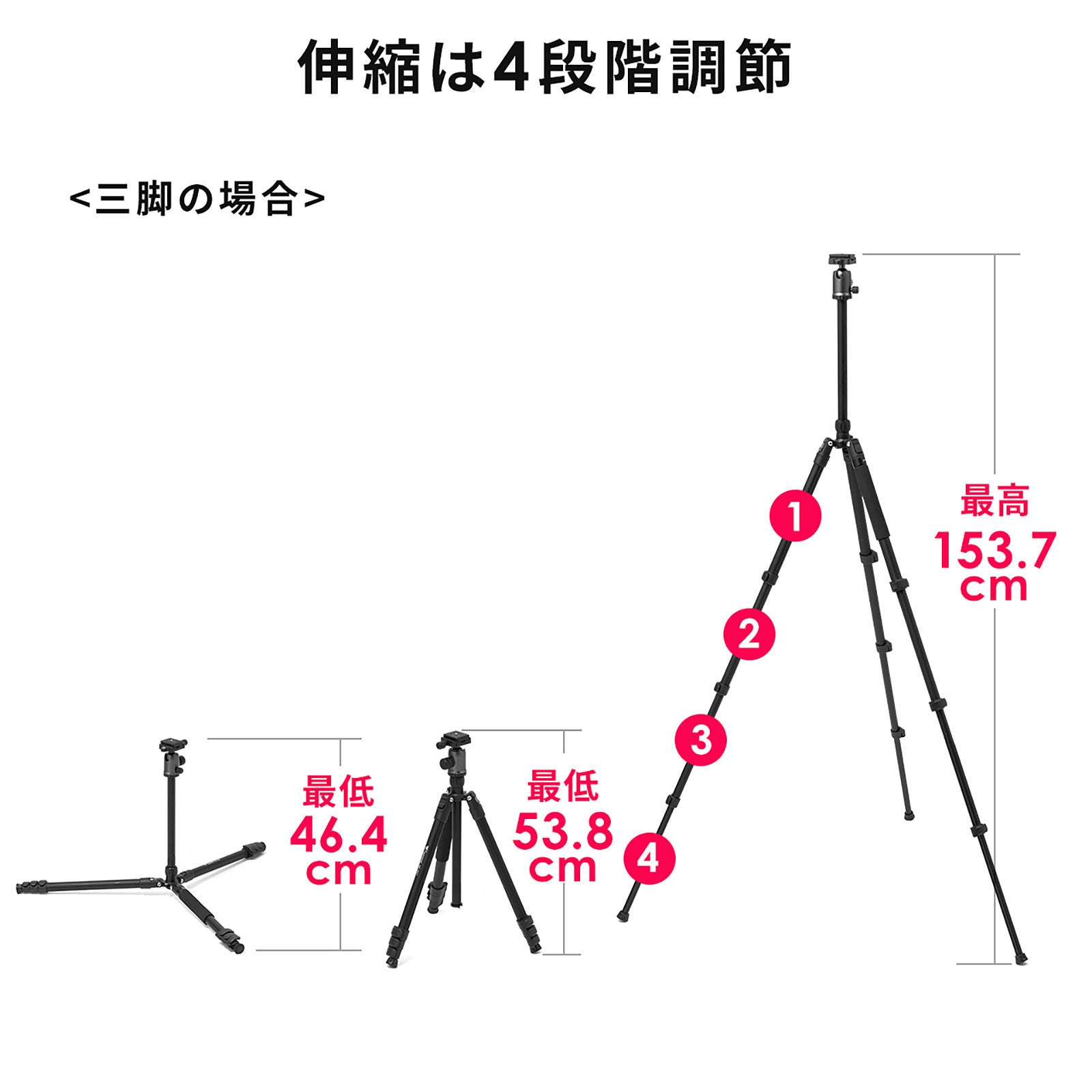 カメラ三脚 一脚としても使用可能 高さ最大155cm