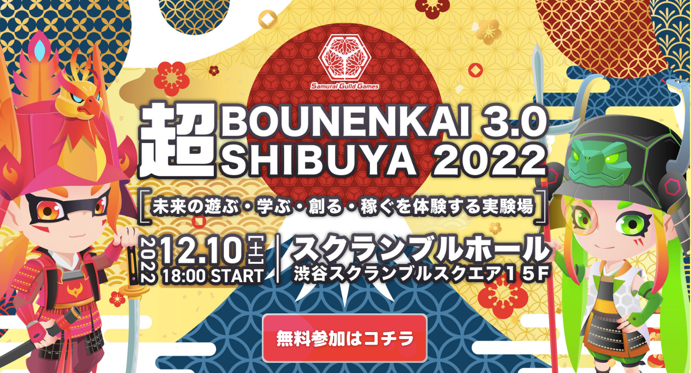 “遊んで稼ぐ“をポートする日本生まれのコミュニティ「Samurai Guild Games」。ギルドメンバーは1万人を超える日本最大級のNFTコミュニティサイトが開催するイベントです。