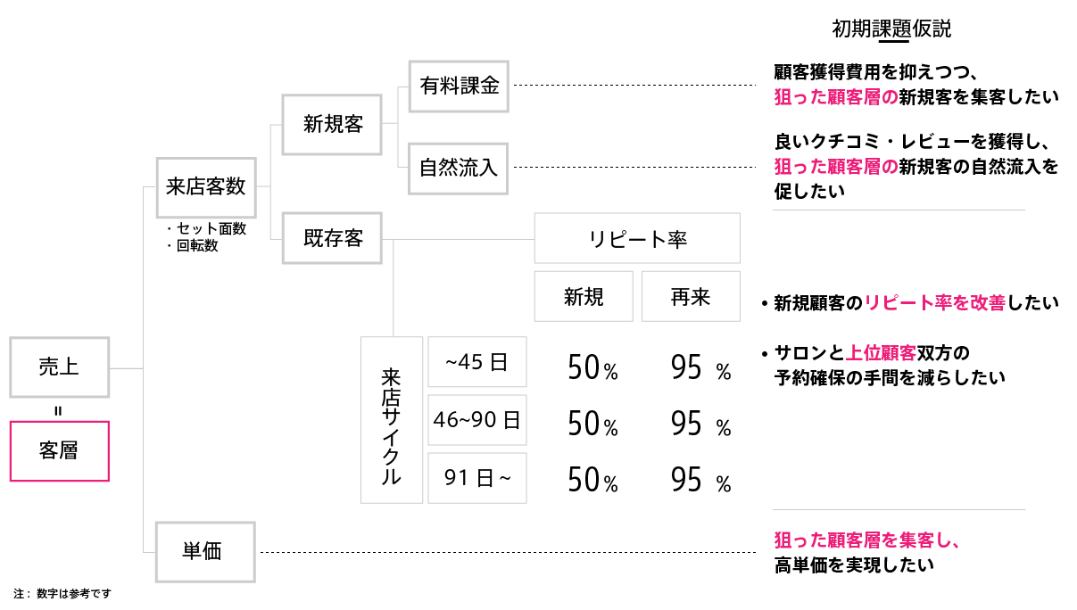 ①狙った顧客層が来店し、提供したかったサービスが注文され施術単価が上がり、